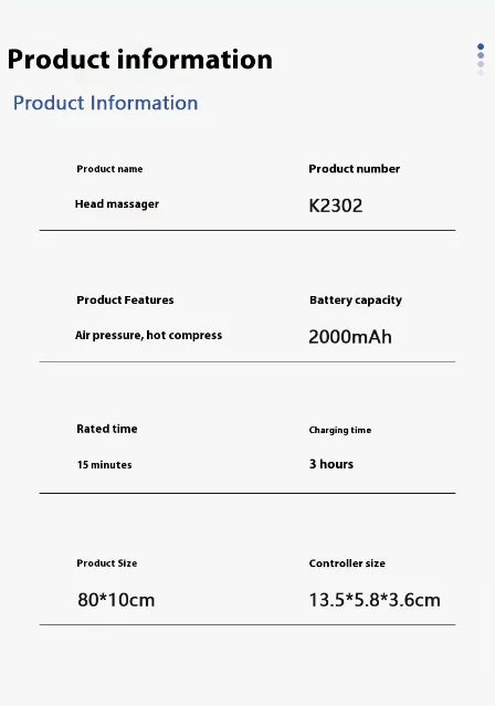 Unwind anytime with the Electric Scalp Massager, featuring 3 adjustable massage gears and soothing hot compress therapy. Powered by a 2000mAh battery for up to 90 minutes of use, it offers quick TYPE-C charging and a 15-minute auto cycle. Perfect for easing stress, boosting circulation, and relaxing on the go.